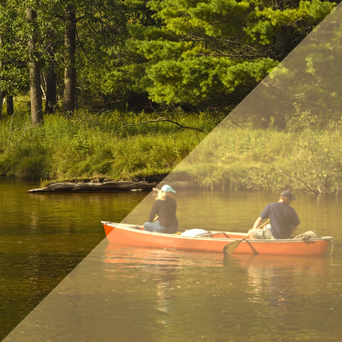 Glare. Headlights, lamps, or sunlight may appear too bright. A halo may appear around lights.